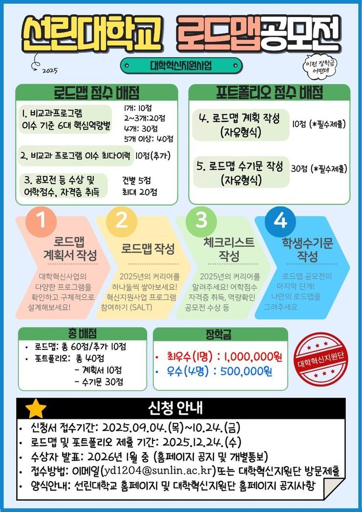 ■ 접수방법 : 이메일(yd1204@sunlin.ac.kr) 또는 대학혁신지원단 방문 제출